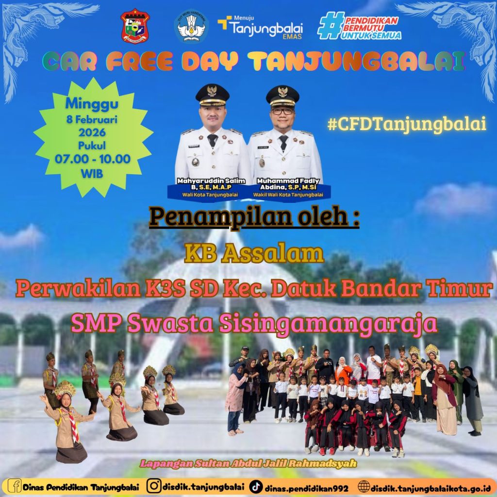 Dinas Pendidikan Kota Tanjungbalai ikut memeriahkan acara Car Free Day Kota Tanjungbalai dengan penampilan oleh : – KB Assalam – Perwakilan