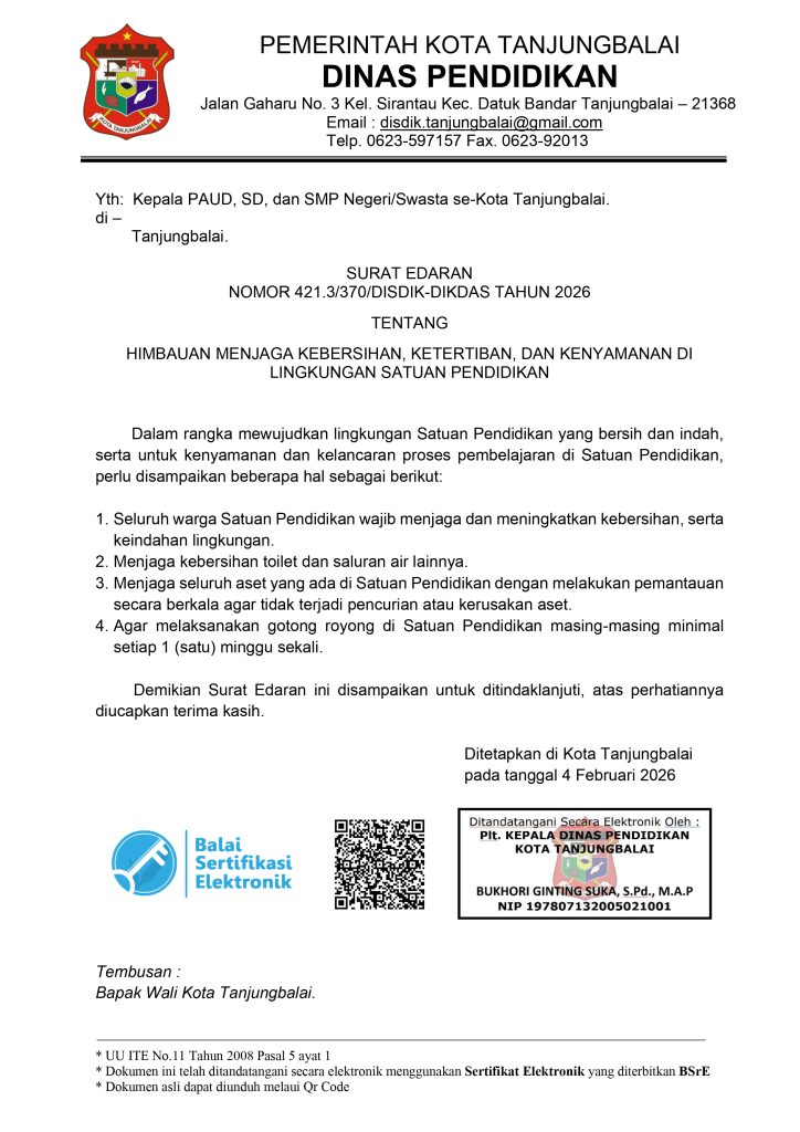 Mengawali bulan suci Ramadhan 1447 H/2026 M, Dinas Pendidikan Kota Tanjungbalai memaksimalkan kinerja ASN di lingkungan Dinas Pendidikan Kota Tanjungbalai […]
