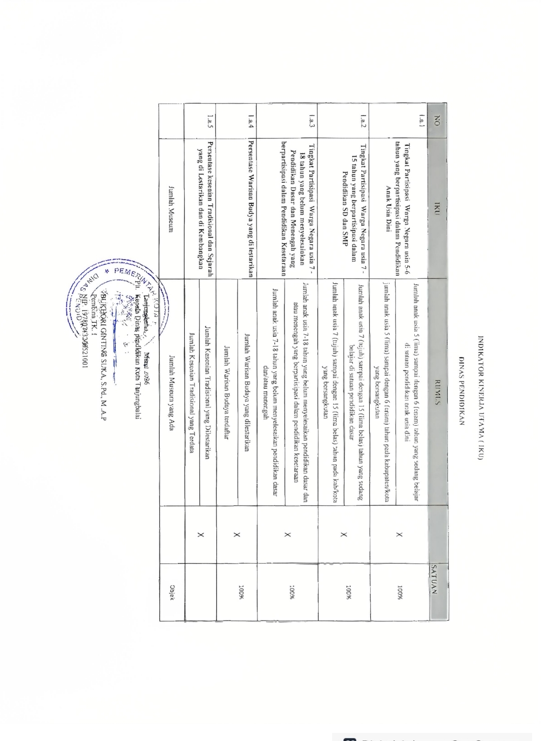 Indikator Kinerja Utama (IKU) Dinas Pendidikan Kota Tanjungbalai