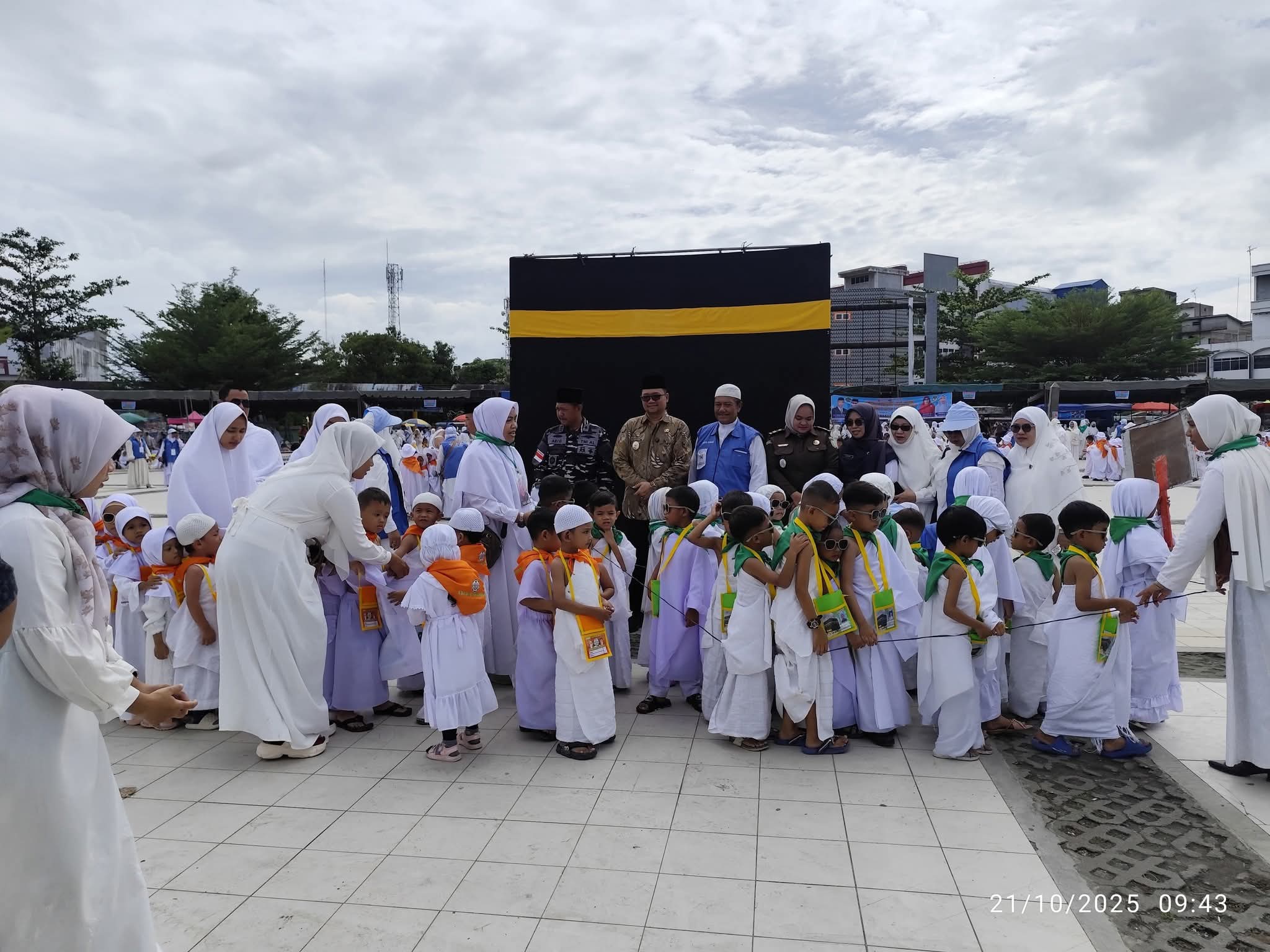 Kepala Dinas Pendidikan Kota Tanjungbalai Ibu Mariani, S.Si, M.Si berkesempatan membersamai para santri dan santriwati RA se-Kota Tanjungbalai pada kegiatan Manasik Haji Akbar RA, bertempat Lapangan Abdul Djalil Rahmadsyah pada Selasa (21/10/2025).