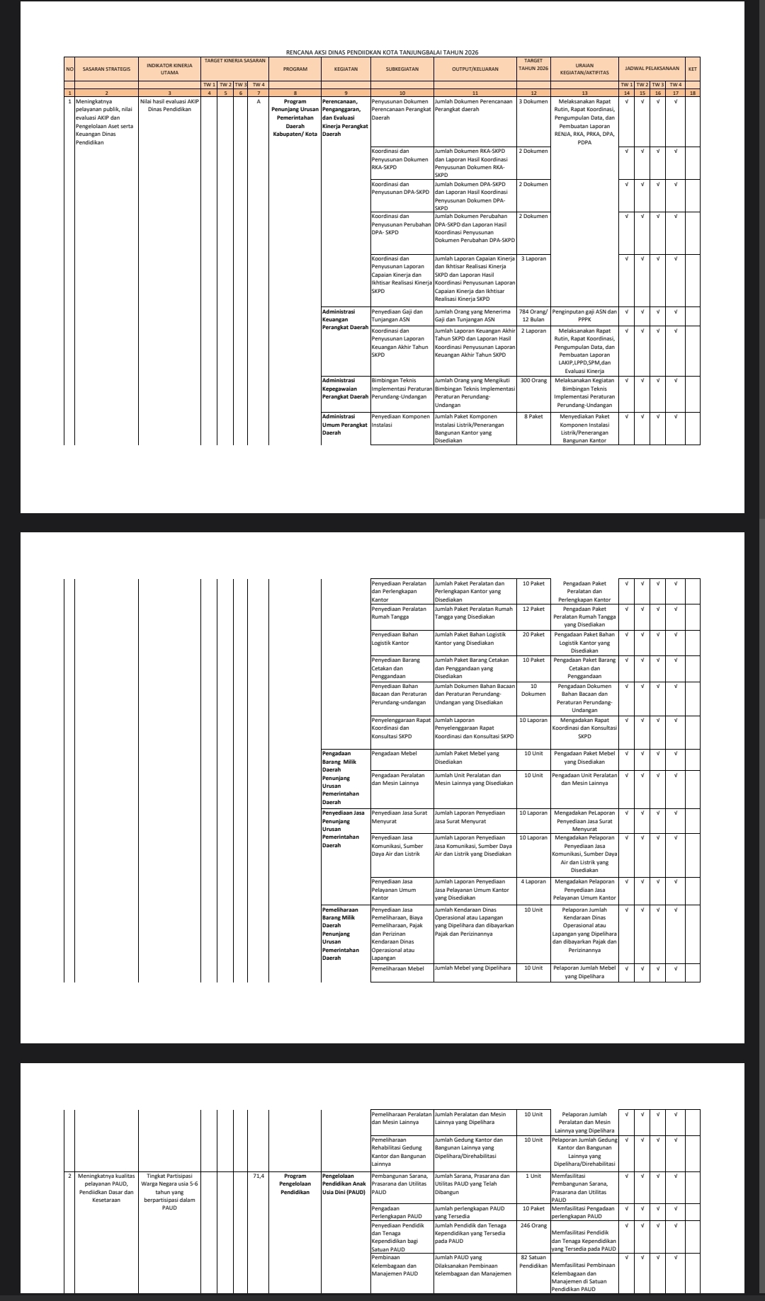 Renja Dinas Pendidikan Kota Tanjungbalai